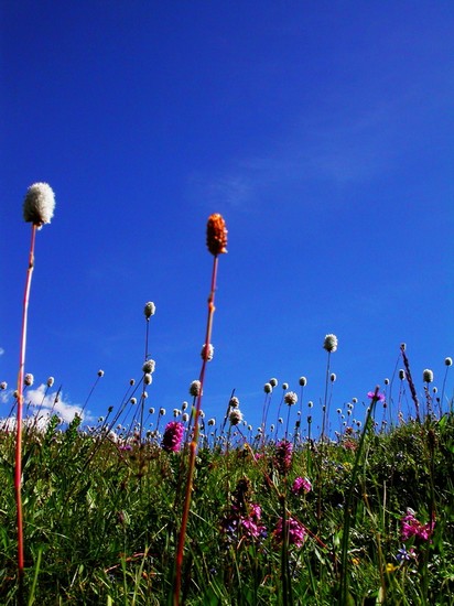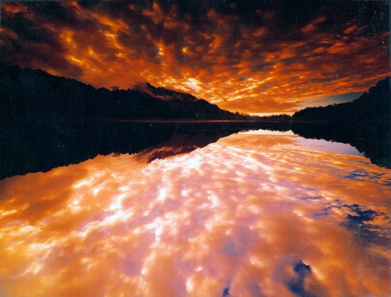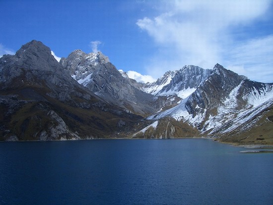 它好象是仙乃日的梳妆台,静静的湖面,深蓝的湖水,含蓄的害羞的在阳光下散发出迷离的色彩。幽深的蓝色仿佛丝绒一般,在仙乃日的脚下雨润烟浓的暖暖舒展。
