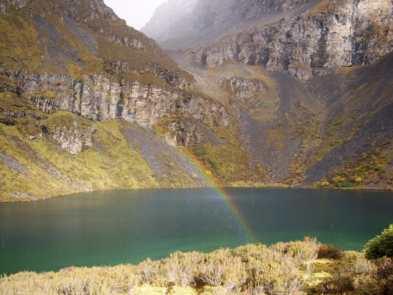 茂密的森林与山、水、奇石、飞瀑……阿科里的“情人海”如同一面湛蓝的镜子,静静地躺在雪山密林当中,林间和草甸上野花绽放,静谧中偶尔会传来一两声牛羊的叫声,美丽的风光让人流忘返。在海子的四周还矗立着各色经幡扎制起来的巨大经塔,风轻轻吹过,翻阅着经幡上一个个美丽传说,也为有情人带来幸福的祈祷。