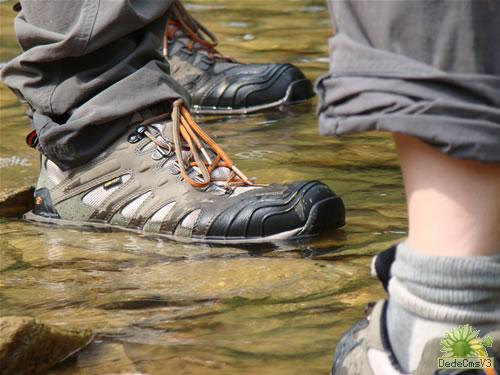 为了测试鞋子的防水性能,我在小溪中走了一个多小时。晚上到达营地脱下鞋后,袜子居然都还是干干的,鞋内没有一点异味!一天中,双脚始终是暖暖的,并像定制的一般恰到好处地包裹着双脚,防止了脚在鞋内的滑动。看来,戈尔特斯TM面料真如传说中的那么神奇!